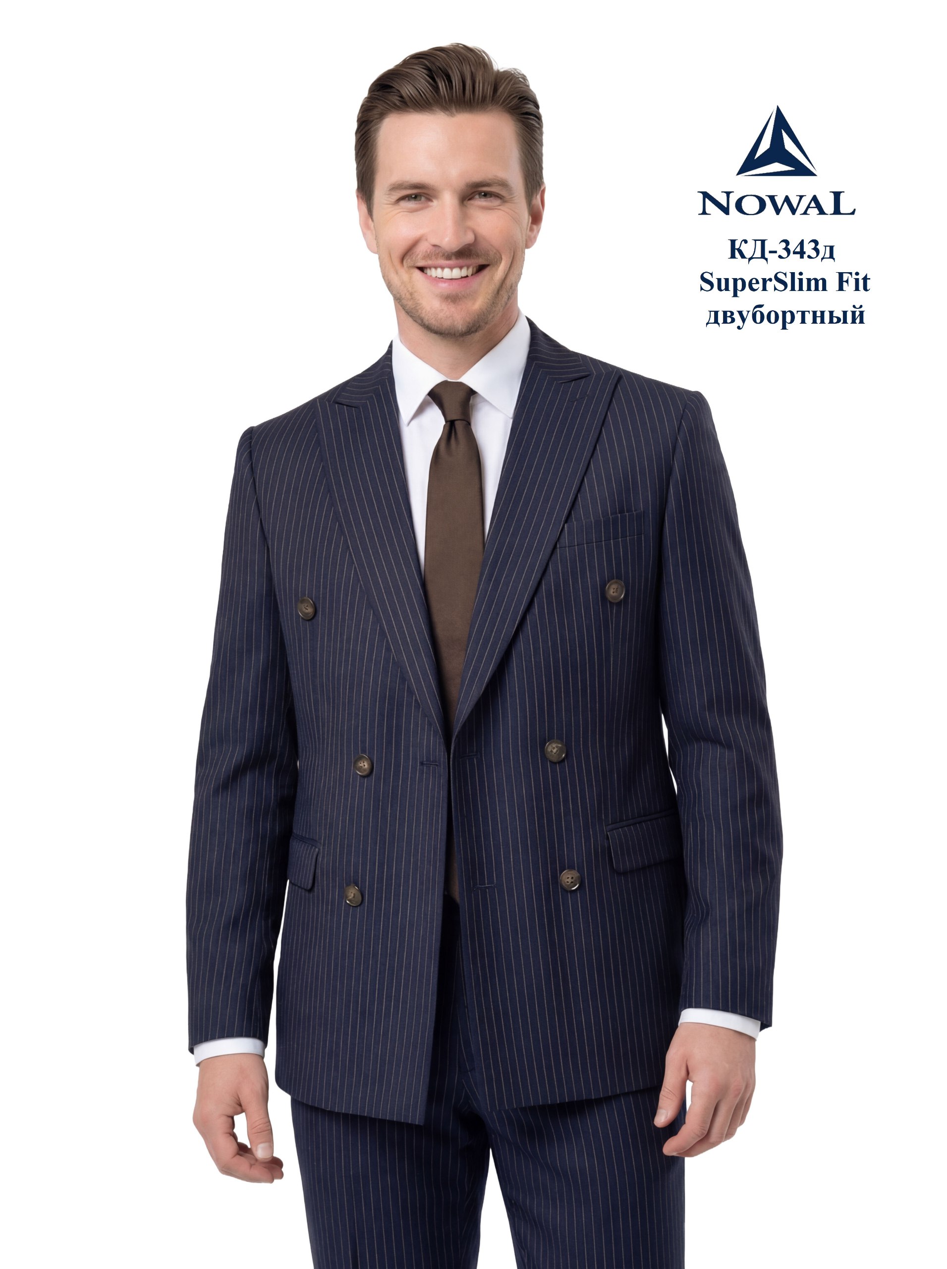 Модель пиджака: 2 пуговицы, 2 шлицы, брюки зауженного кроя без складок на поясе